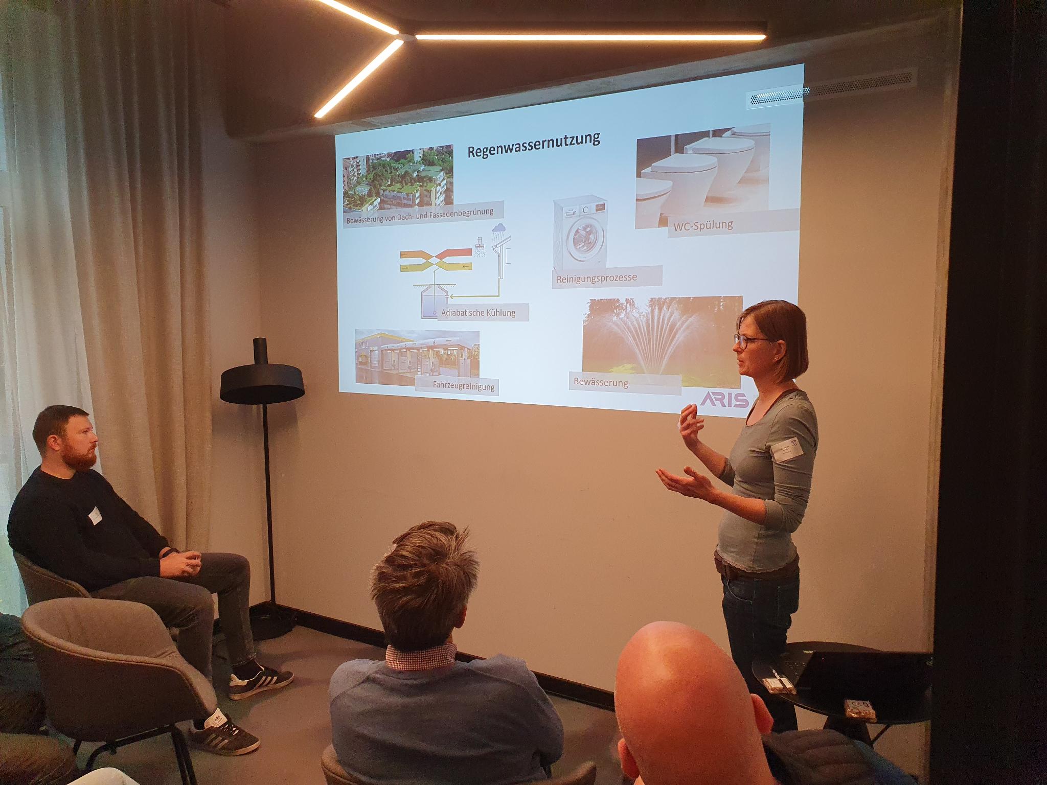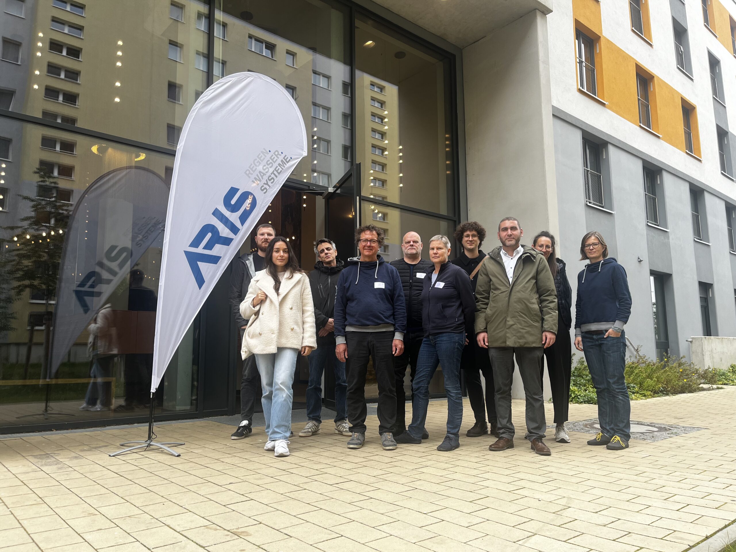 Bei der anschließenden Live-Besichtigung führte Nader Nolde die Gruppe durch den kompletten Prozess der Grauwasserrecyclinganlage und öffnete den Blick für technische Details, die man auf dem Papier nie so greifbar erlebt. Die Planung stammt von Nolde – innovative Wasserkonzepte GmbH; ARIS hat die Anlage anschließend vollständig gefertigt.