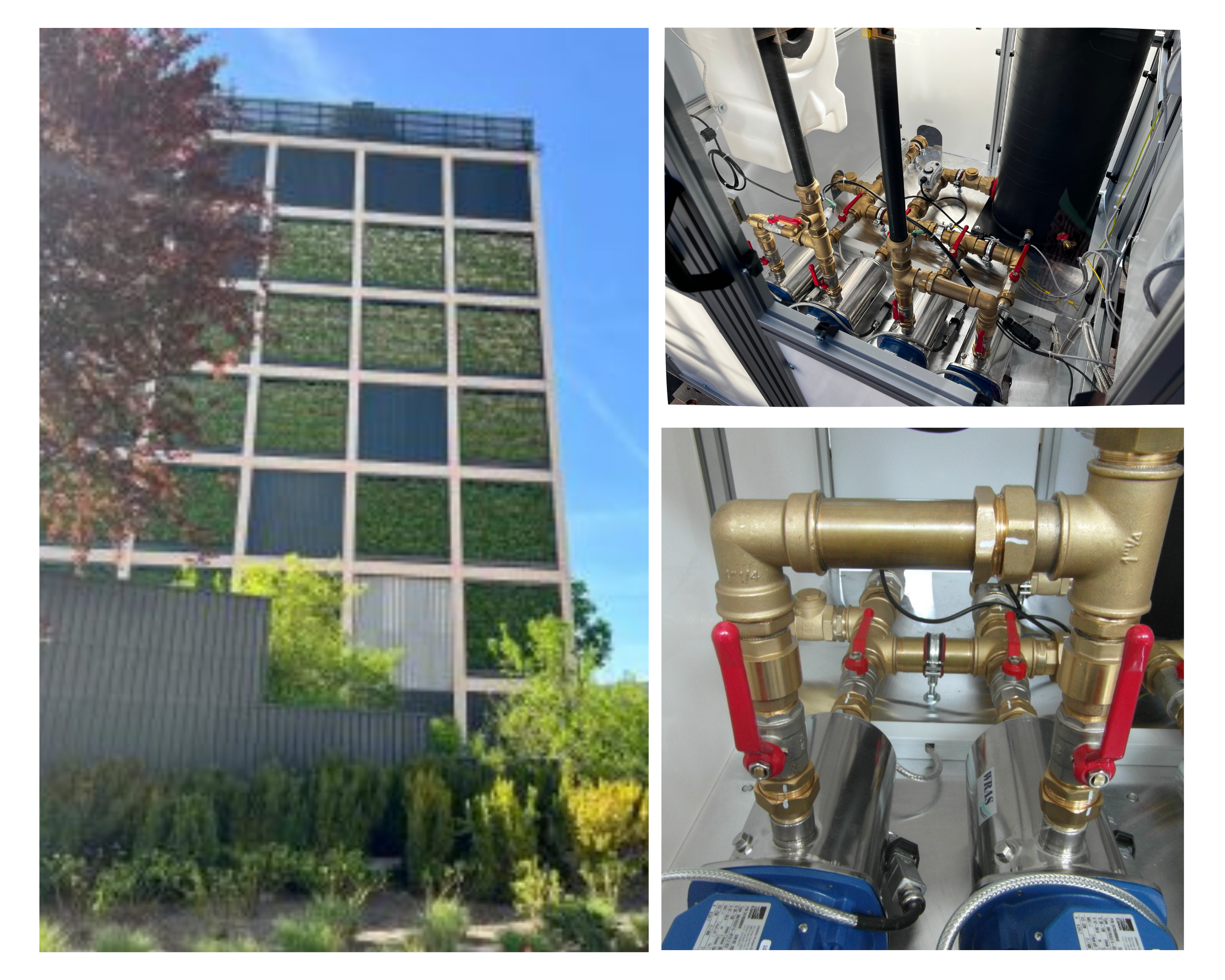 Neben dem Regenwasser spielt auch Grauwasser (also leicht verschmutztes Wasser z. B. aus Duschen) eine Rolle. Aber: Für die Bewässerung der Pflanzenfassade war laut Vorgaben ausschließlich Regenwasser erlaubt.